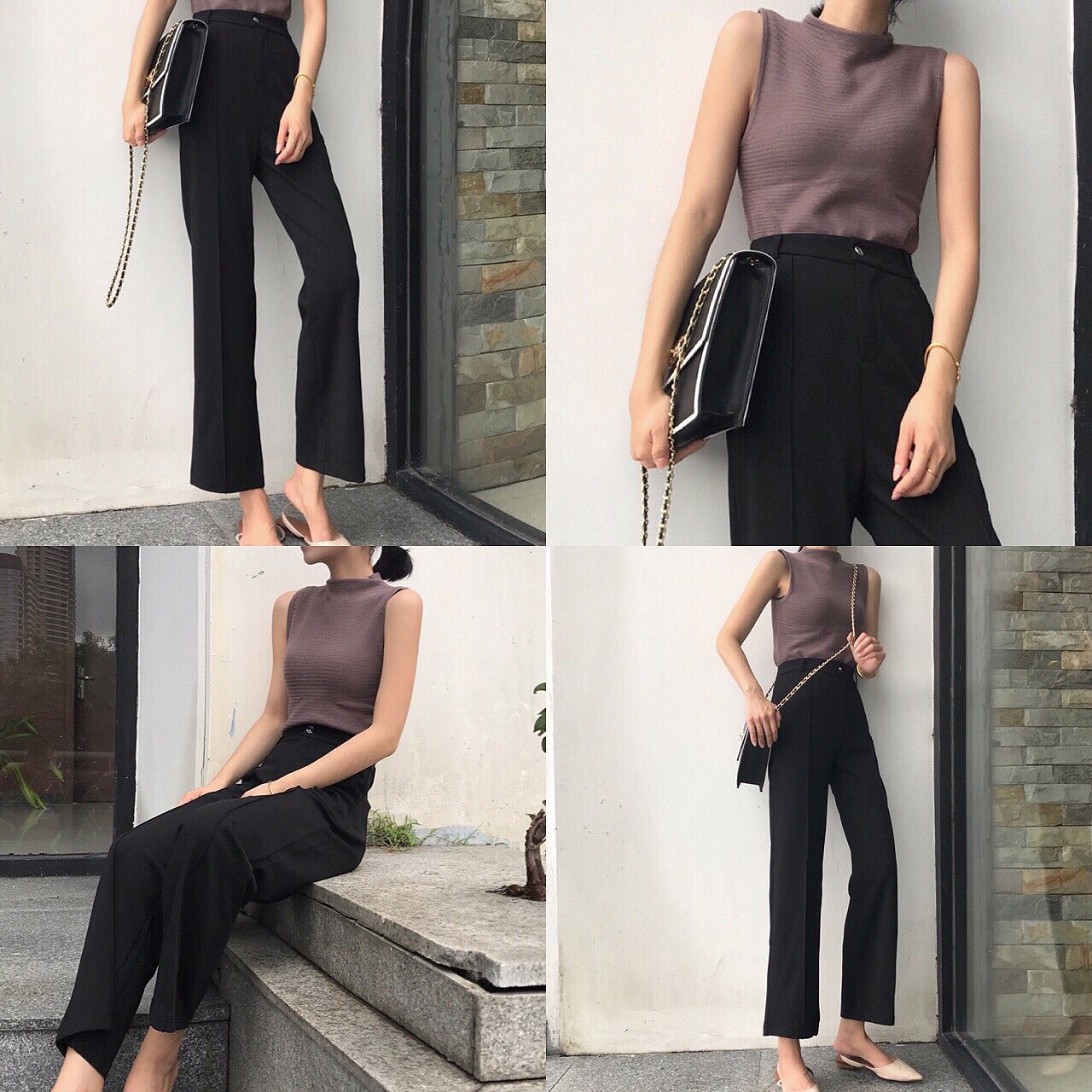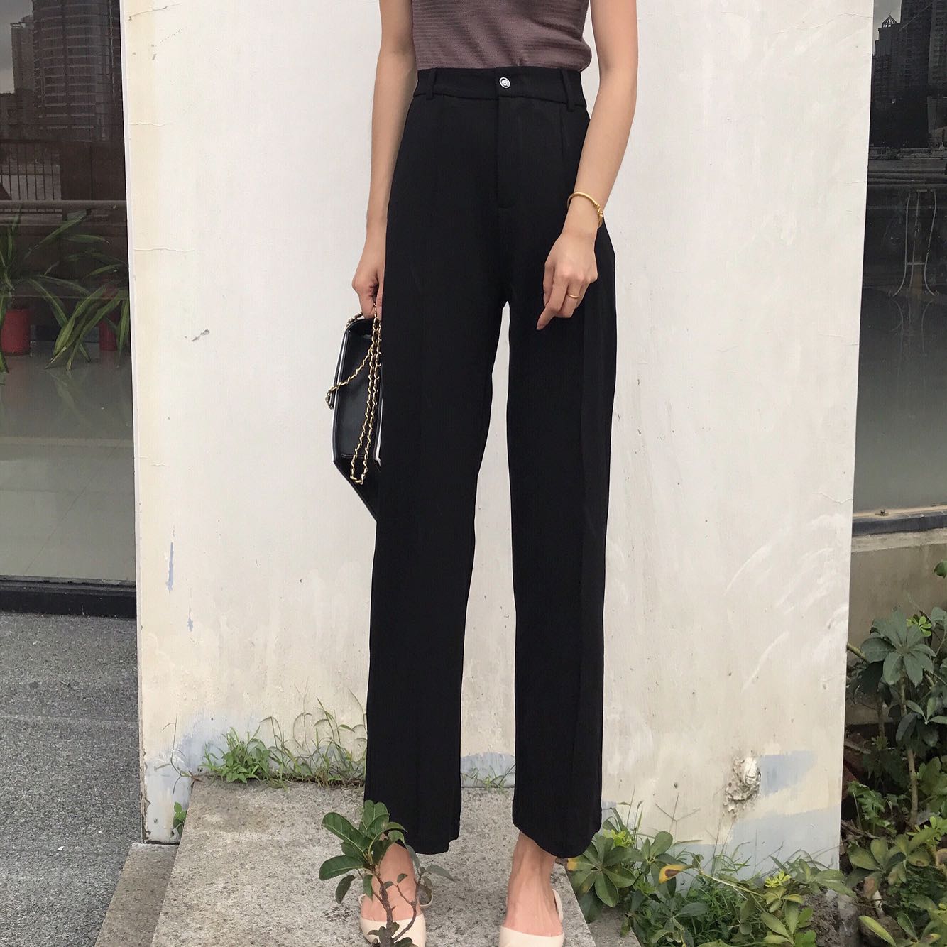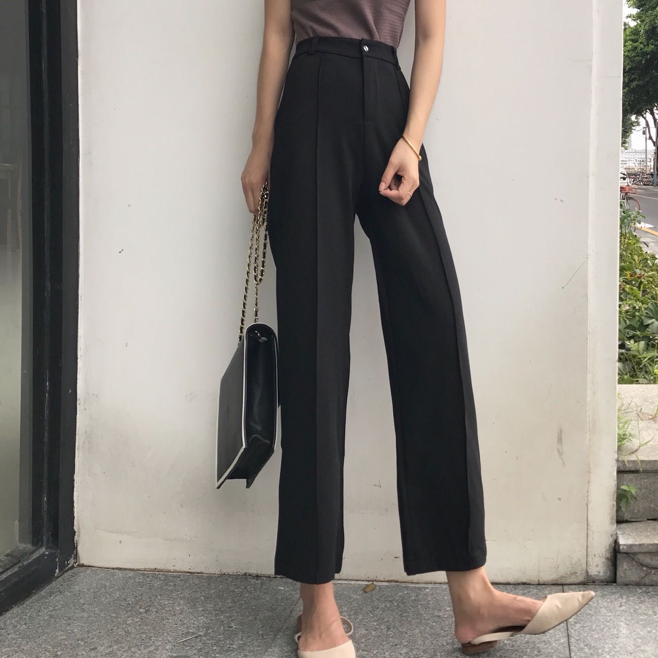 / 2018早秋新款chic復古垂感黑色顯瘦高腰闊腿百搭九分直筒休閑褲女