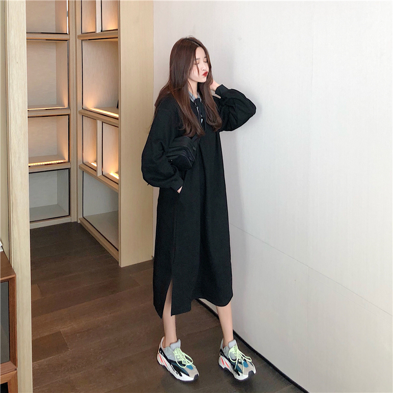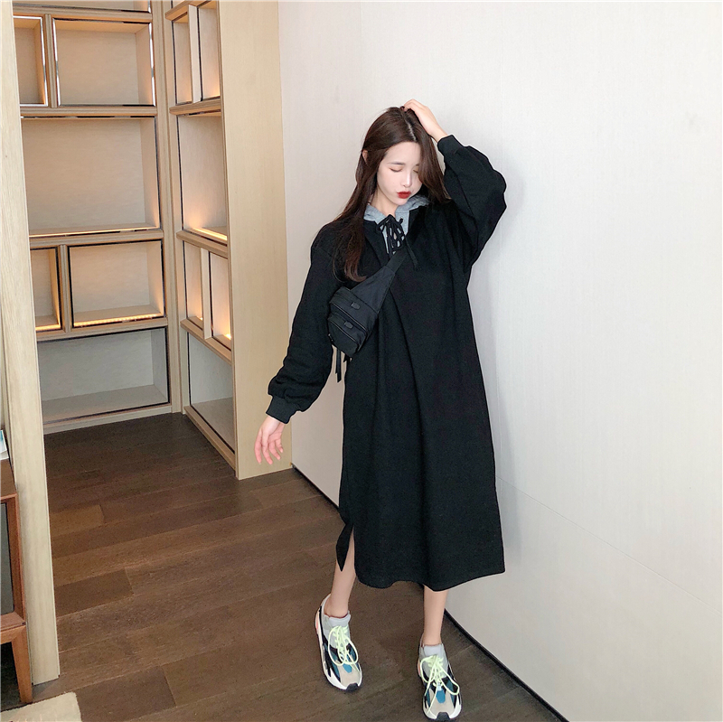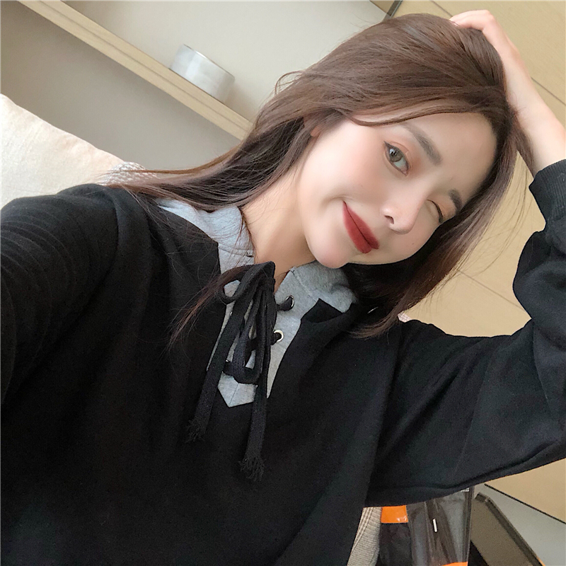 / 學生新款寬松中長款連帽綁帶加絨加厚套頭chic衛衣