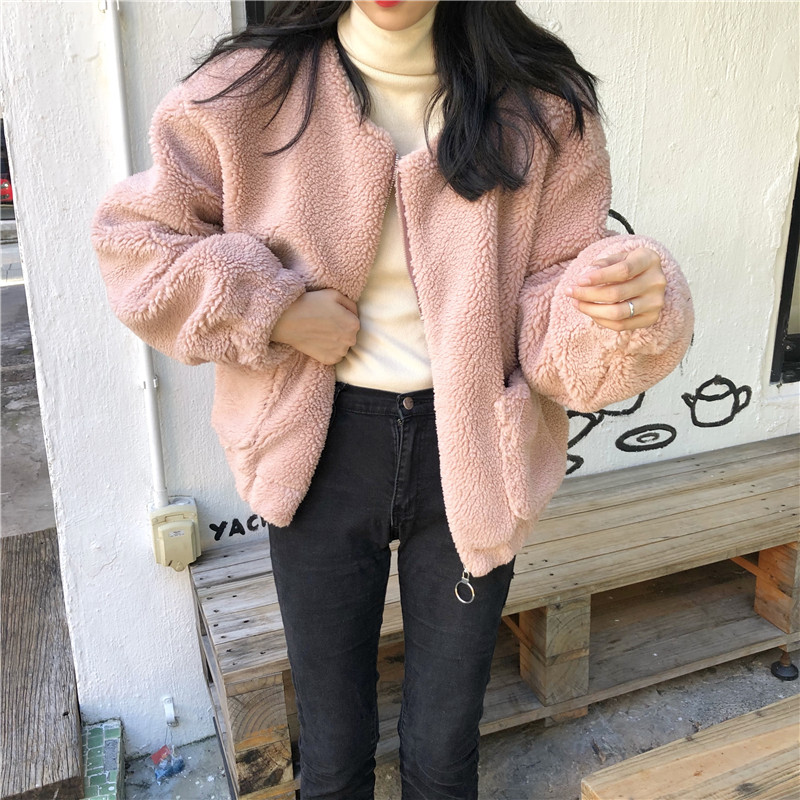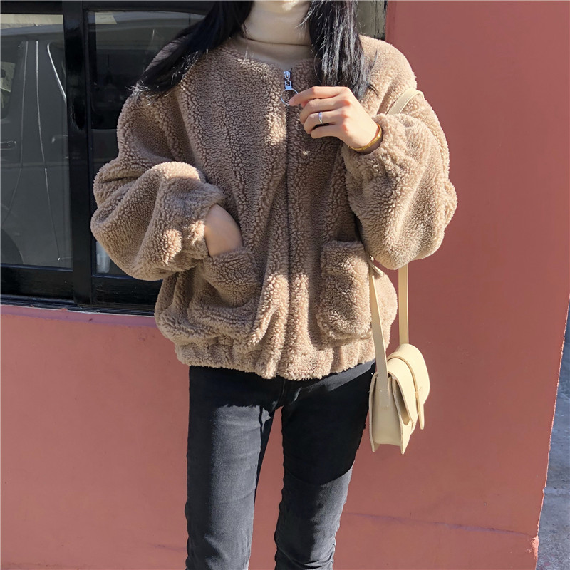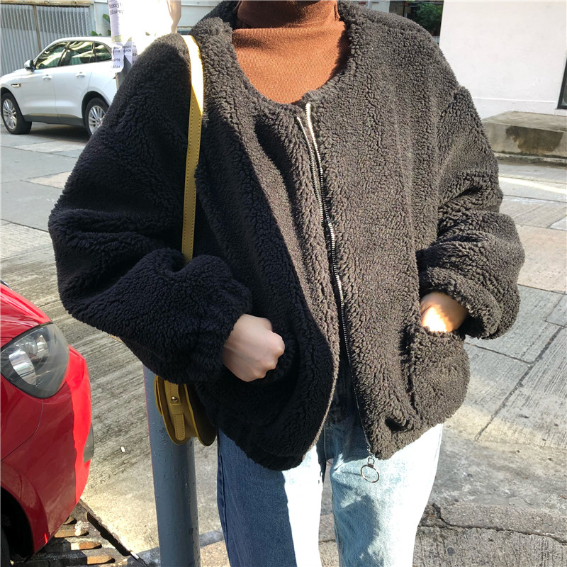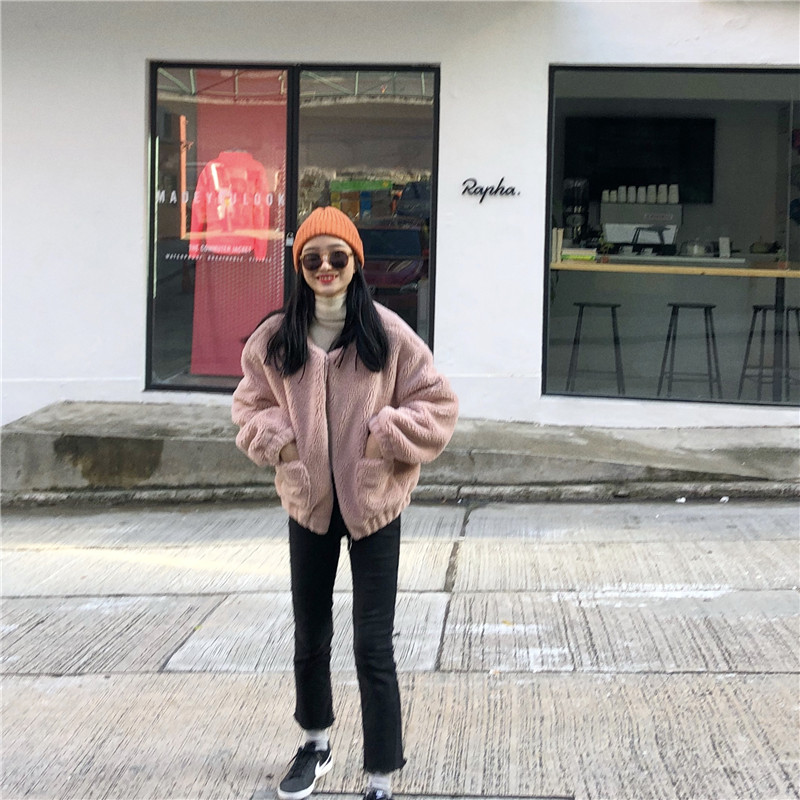 毛呢外套女冬季大衣女新款2018韓版百搭加厚羊羔毛拉鏈保暖上衣潮