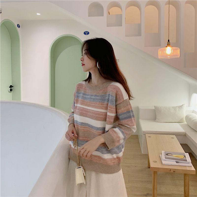 毛衣女2018新款豹紋套頭針織衫慵懶風寬松oversize中長款毛衣女潮