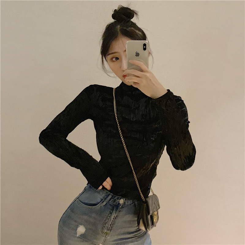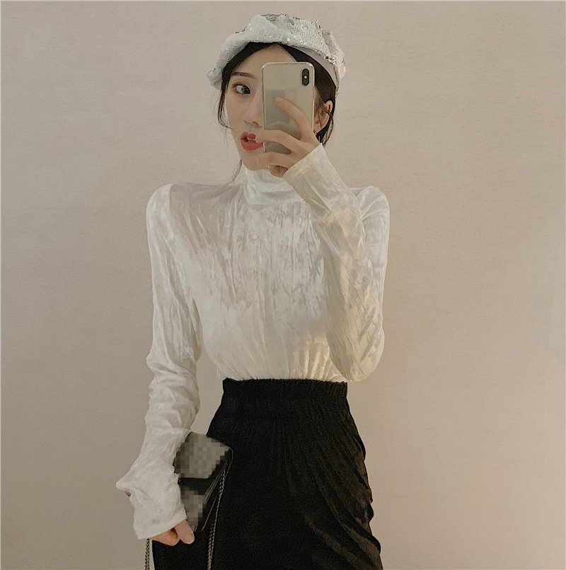 chic港味上衣女秋冬新款絲絨百搭保暖加厚純色修身顯瘦T恤打底衫