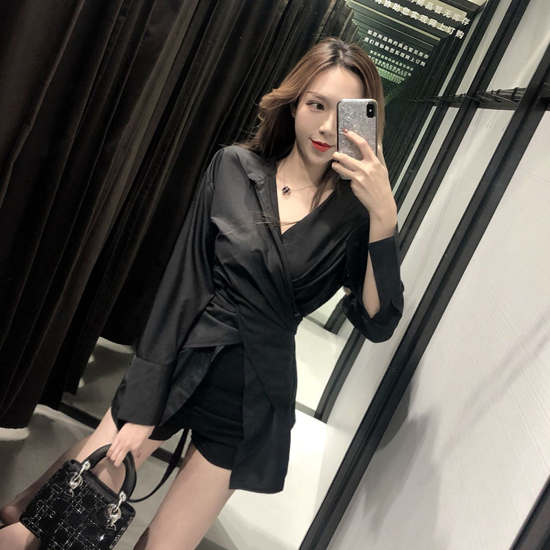 2018秋裝新款韓版顯瘦設計感襯衫顯瘦高腰短褲時尚套裝chic兩件套