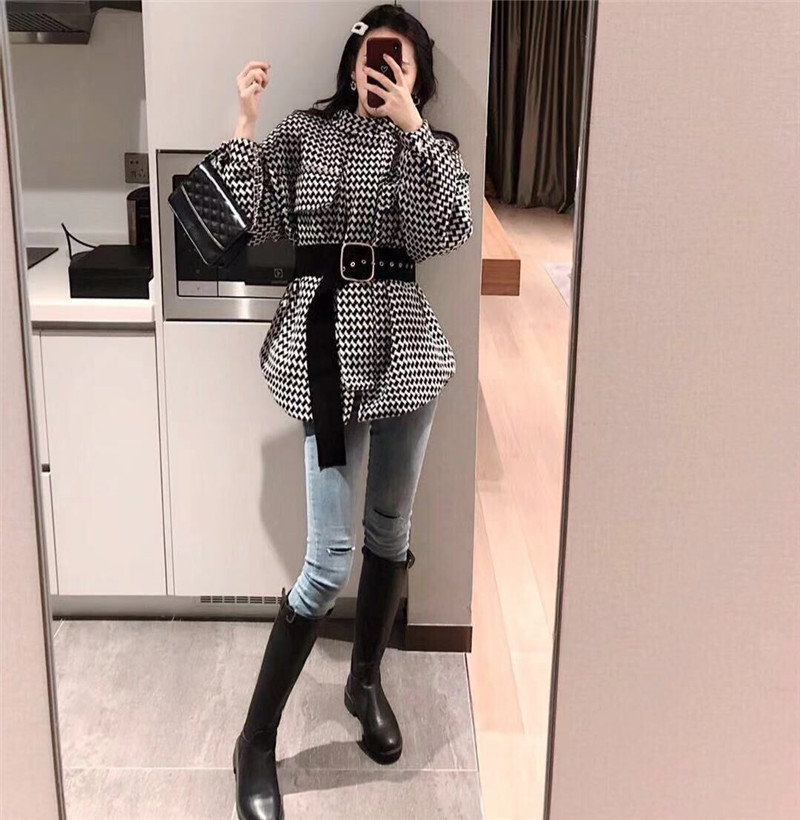 / 大衣女秋冬新款韓版chic修身百搭高腰綁帶中長款長袖立領呢子外套
