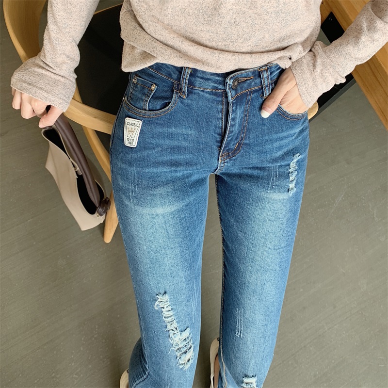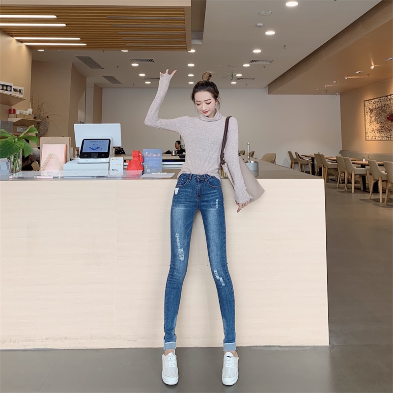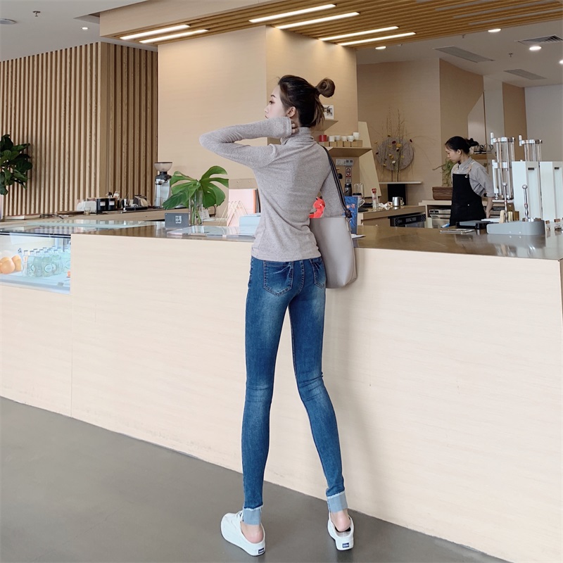 韓版顯瘦彈力修身九分鉛筆高腰緊身小腳牛仔褲女秋冬2018新款褲子