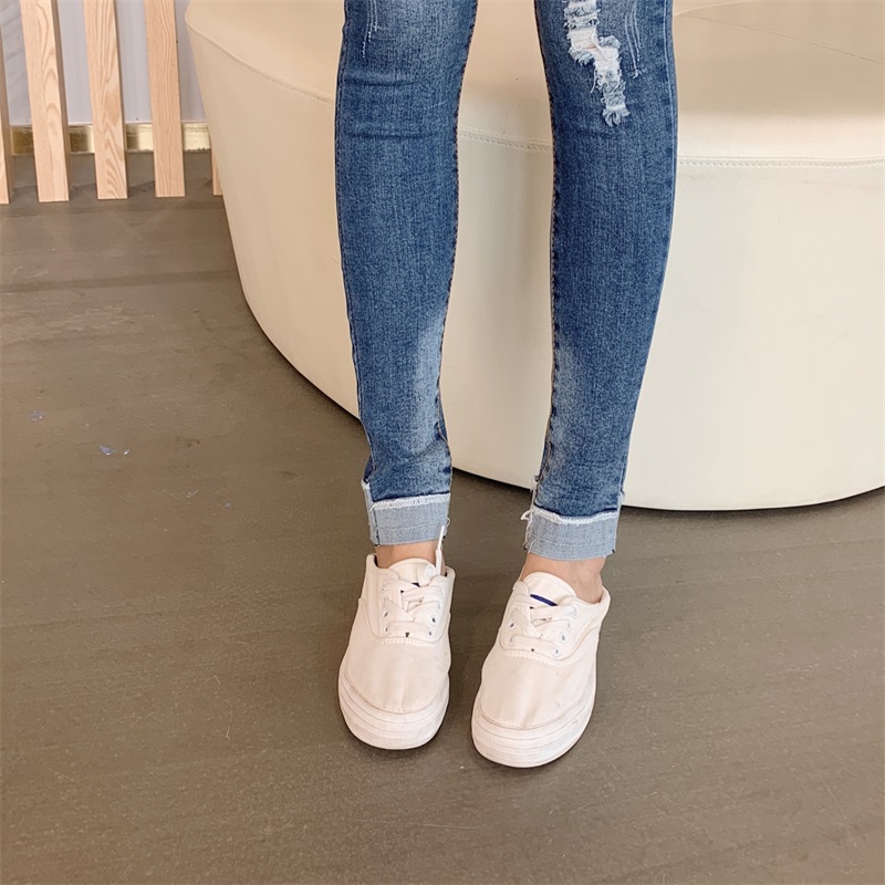 港味復古chic褲子煙灰色破洞高腰顯瘦毛邊牛仔九分小腳褲鉛筆褲潮