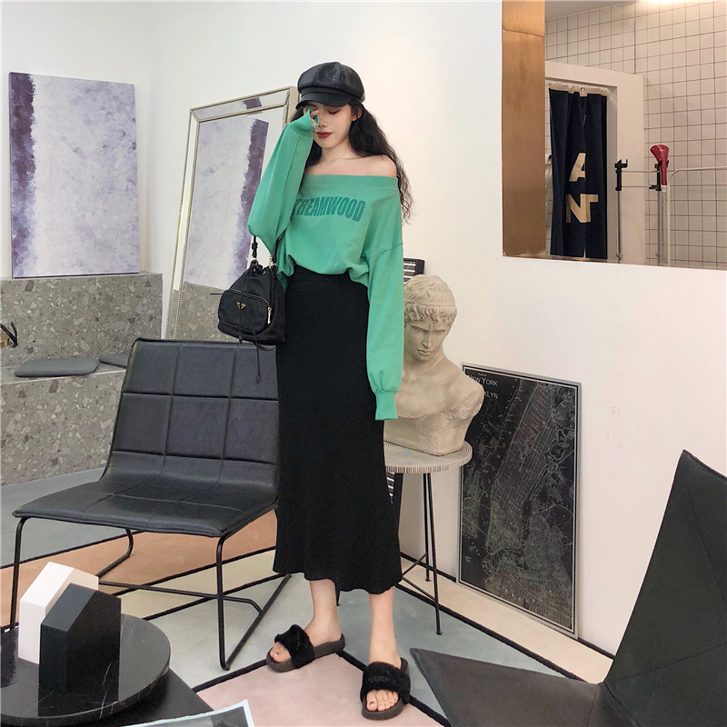 搭配螺紋收口的下擺 搭配半身裙也很有街拍的感覺,隨意