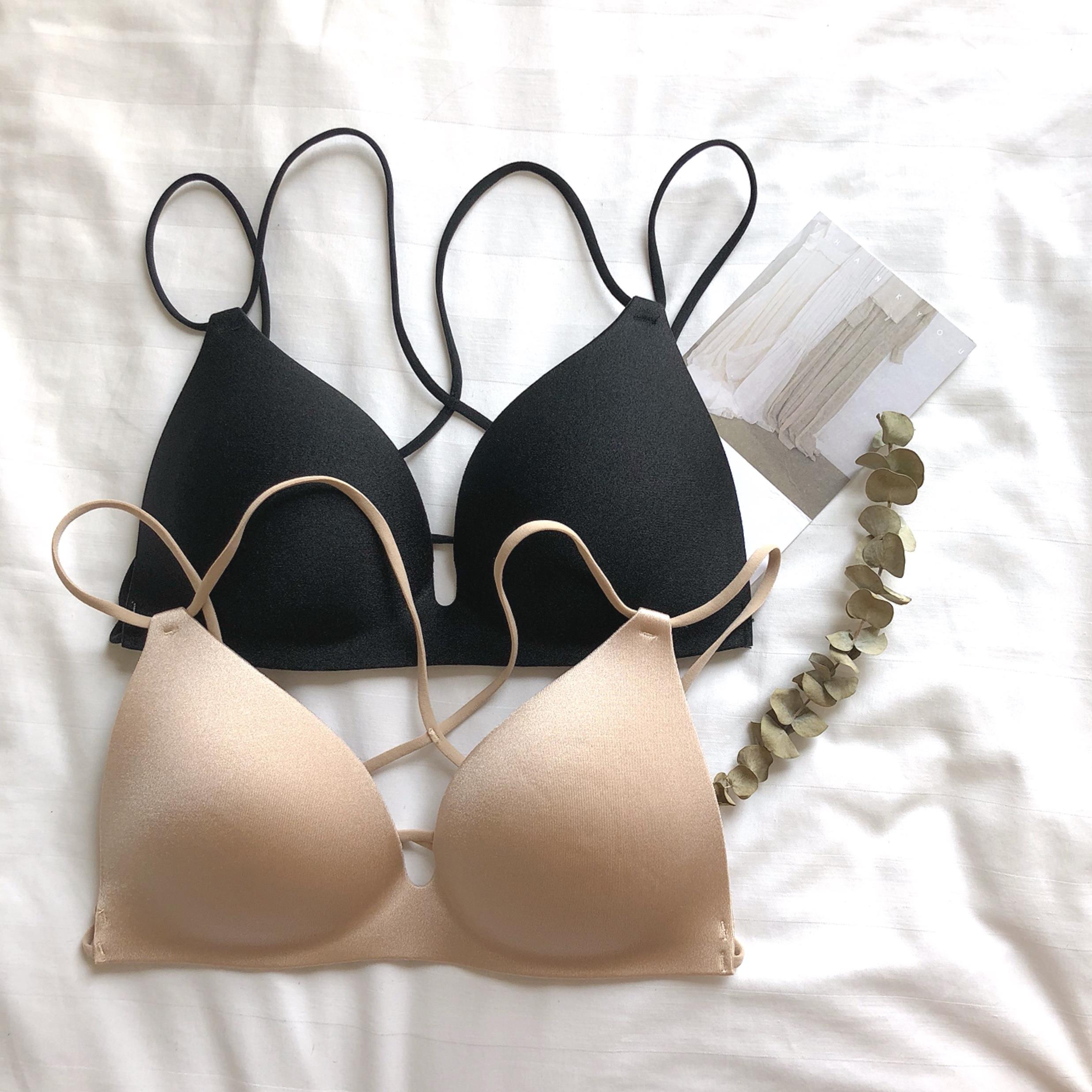港味復古chic掛脖后背交叉美背少女無痕內衣無鋼圈小胸聚攏文胸
