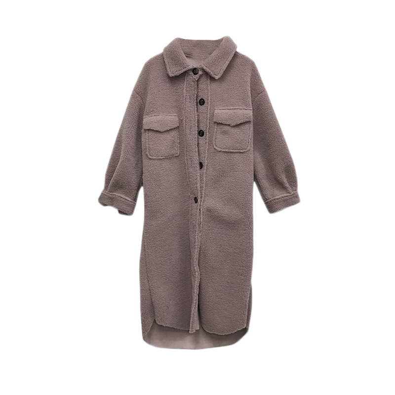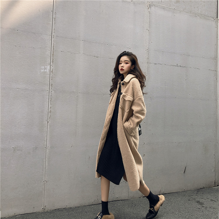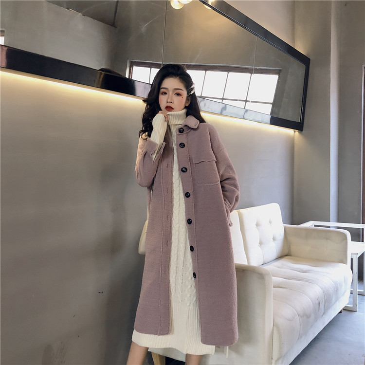 / 復古溫柔氣質羊羔毛單排扣純色加厚保暖長款毛呢外套女2018新款冬