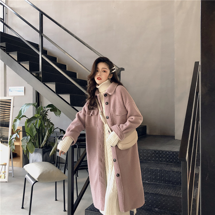 復古溫柔氣質羊羔毛單排扣純色加厚保暖長款毛呢外套女2018新款冬