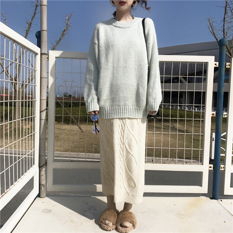 很獨特的清新感 吧毛衣搭在肩上跟披巾一樣搭配