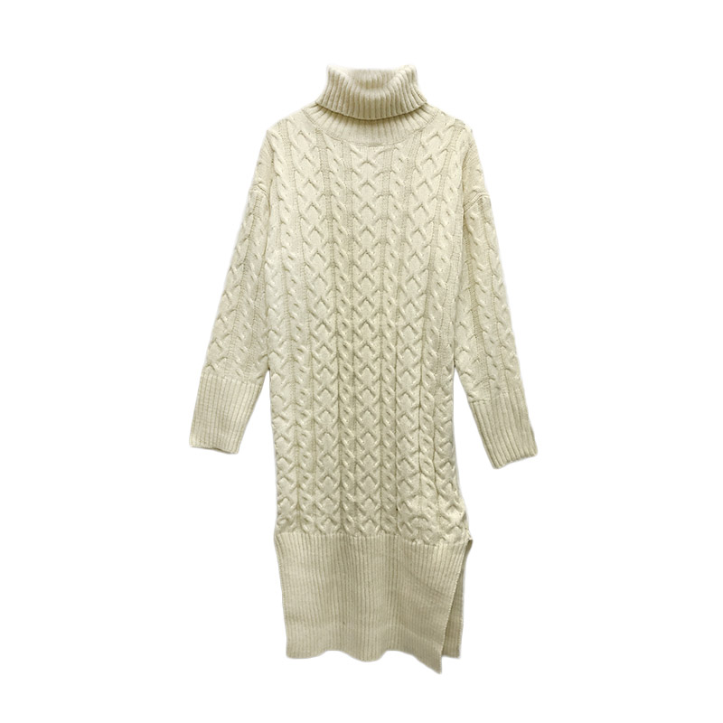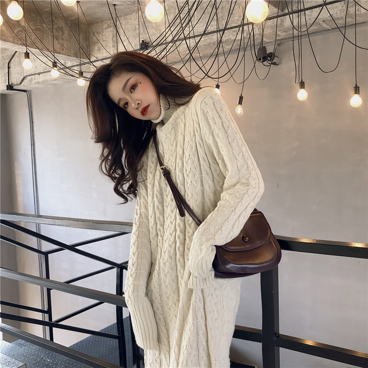 復古秋冬毛衣外套女韓版2018新款高領麻花針織百搭長款打底毛衣裙