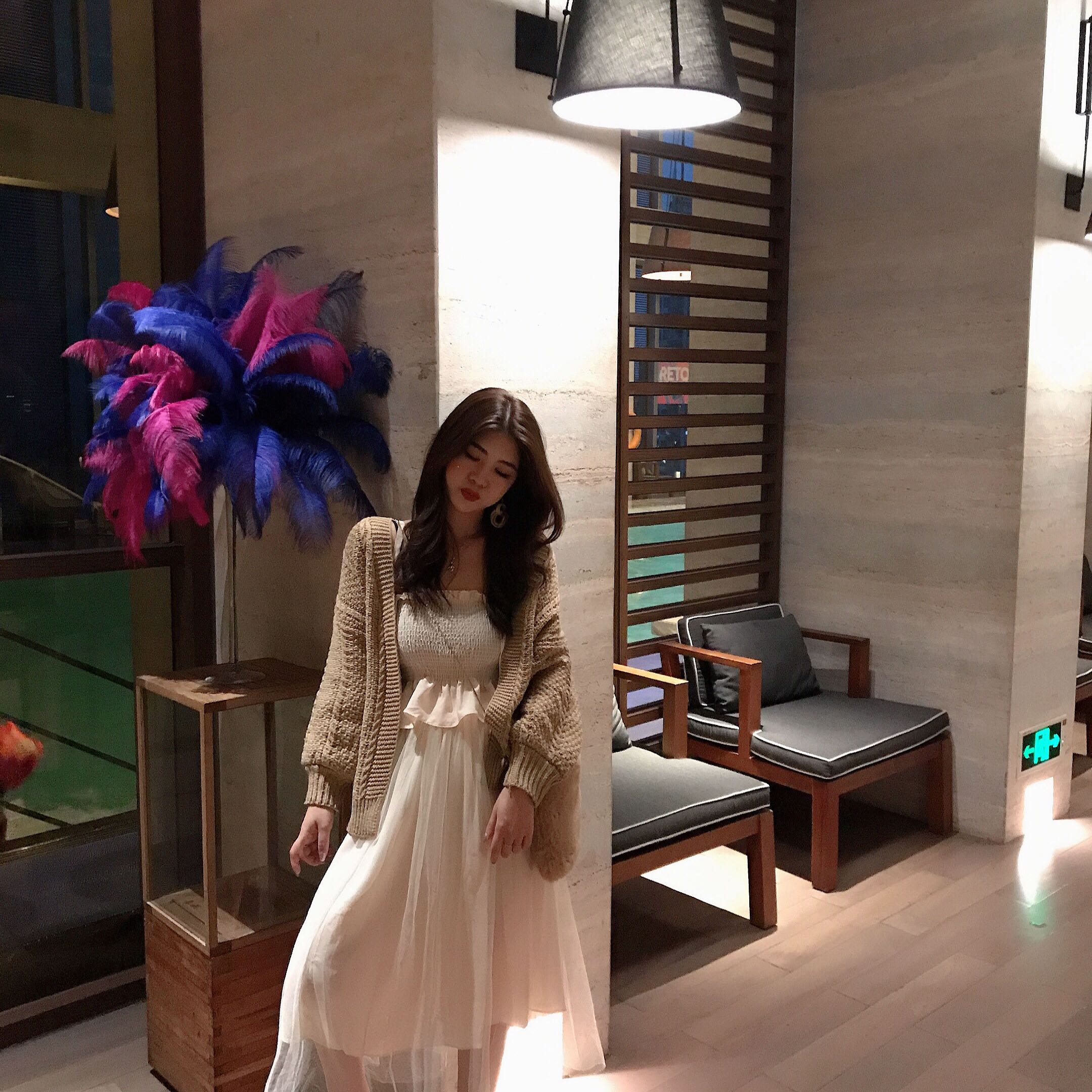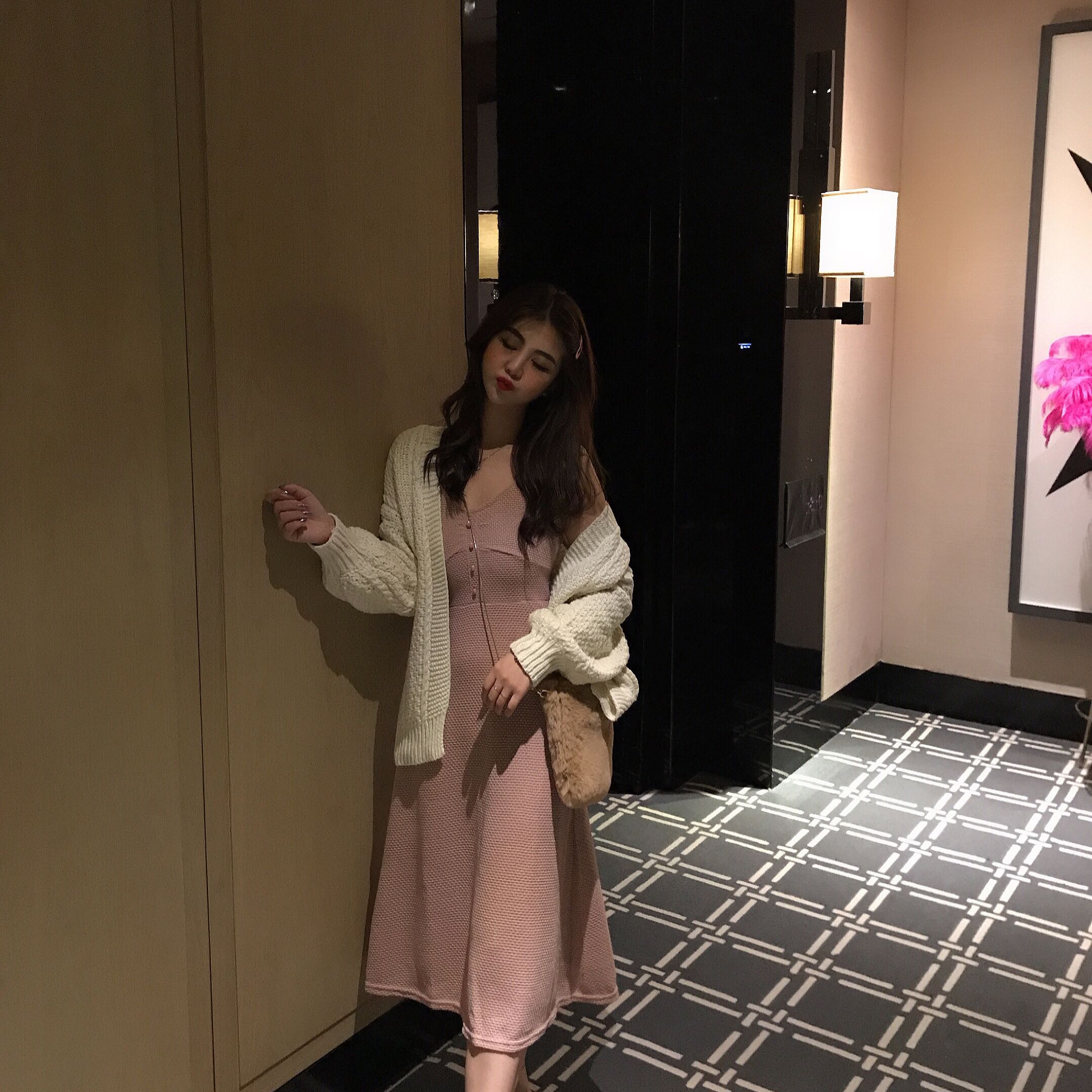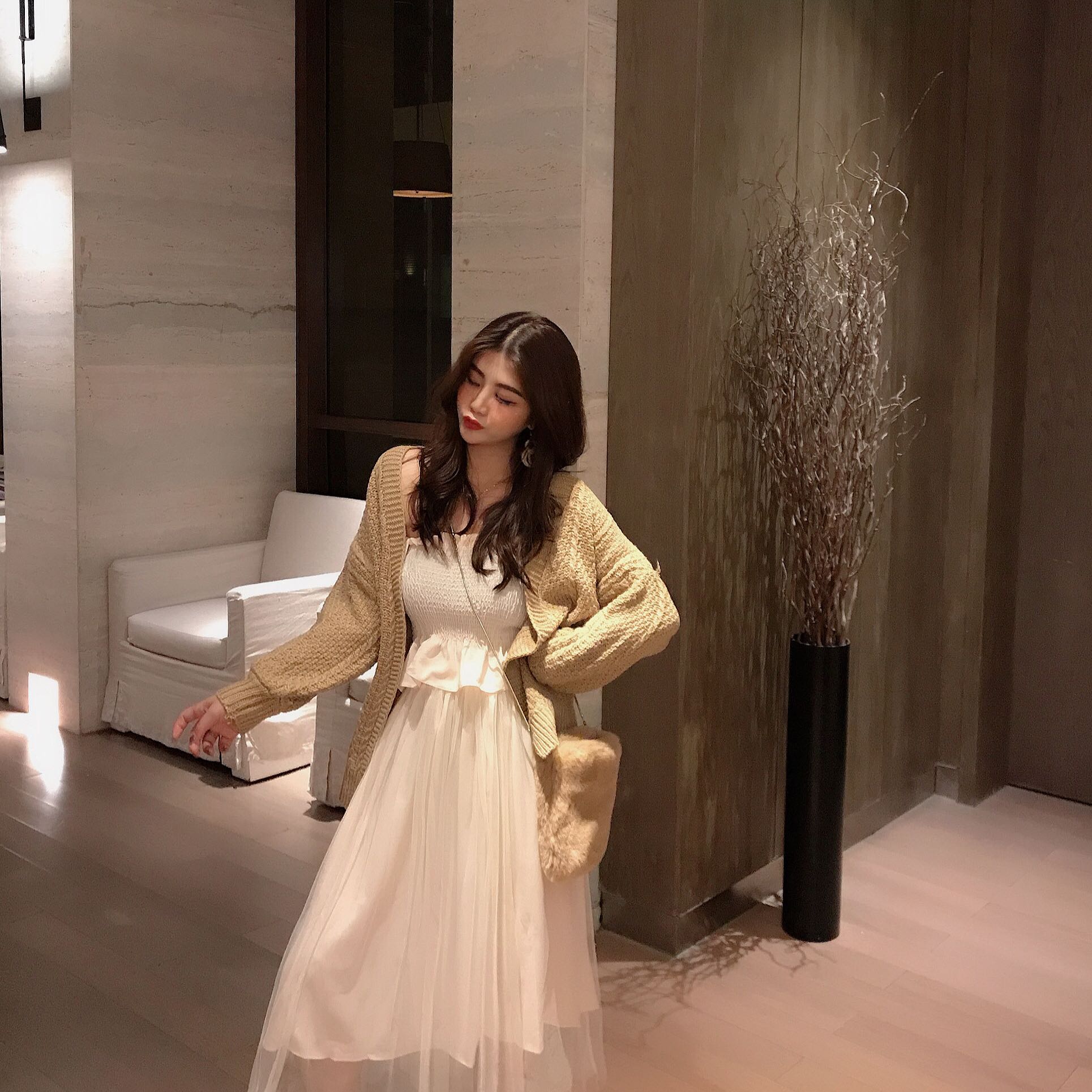馬海毛網紅毛衣女2018新款針織開衫外套冷淡風針織吊帶連衣裙套裝