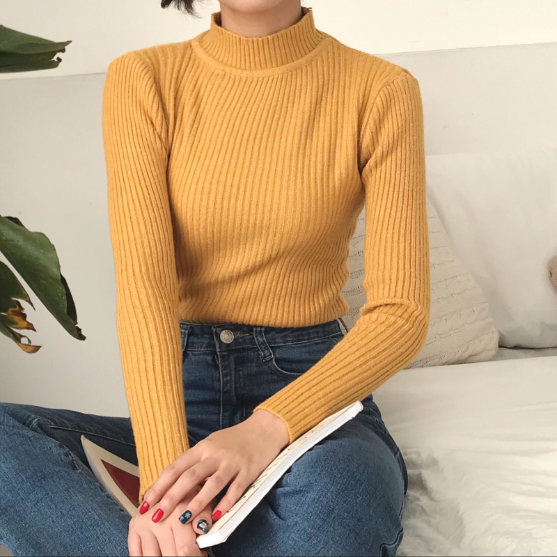 / 純色中高領加厚坑條打底針織衫內搭保暖毛衣