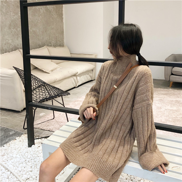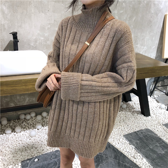 秋冬季女裝新款韓版中長款百搭chic寬松慵懶半高領質感坑條毛衣潮