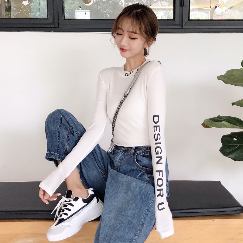 / 新款韓版秋裝chic修身顯瘦百搭上衣網紅同款字母T恤長袖打底衫潮