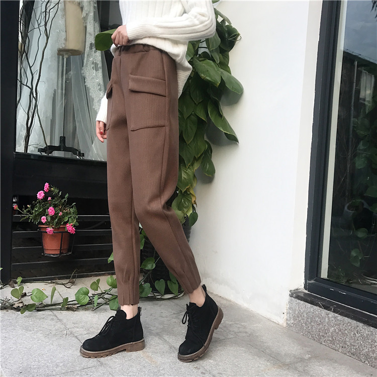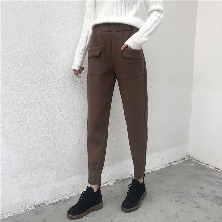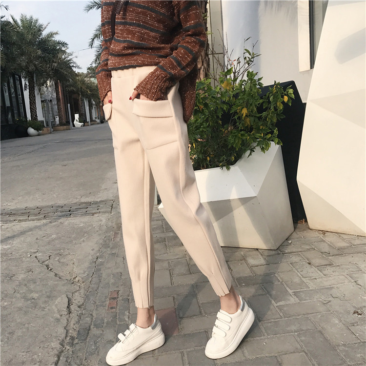 2018新品港味毛呢褲女秋冬小腳褲蘿卜褲休閑褲顯瘦百搭長褲子女冬