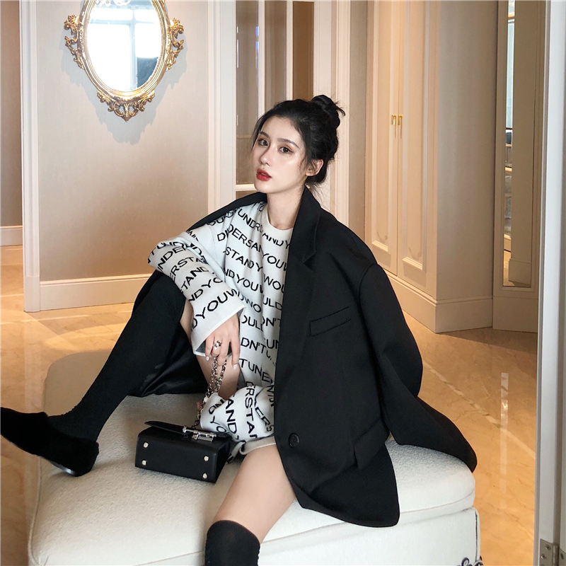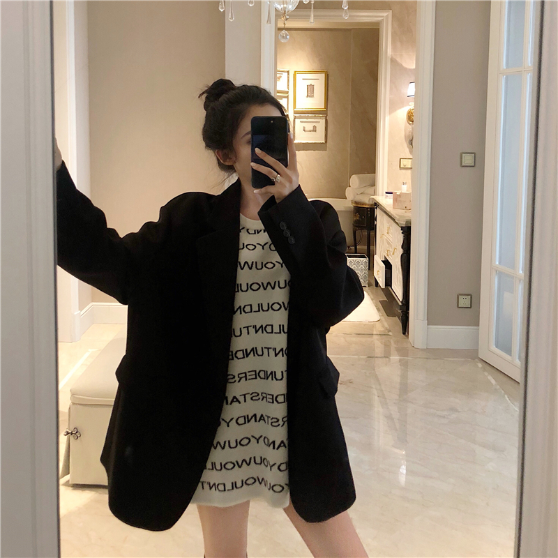 / 慵懶風新款女裝韓版秋季時尚套裝字母套頭毛衣西裝外套chic兩件套