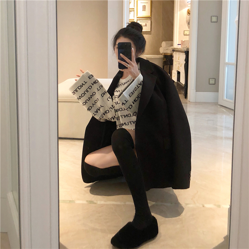 慵懶風新款女裝韓版秋季時尚套裝字母套頭毛衣西裝外套chic兩件套