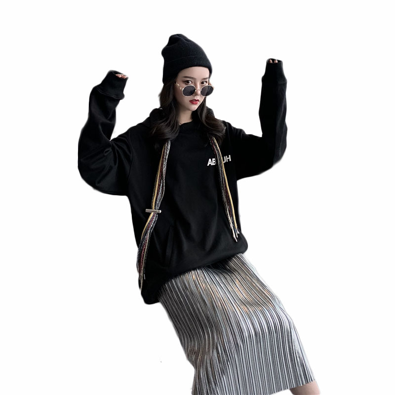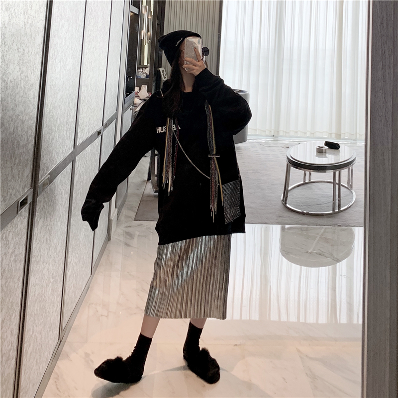 黑色衛衣|壓褶半裙