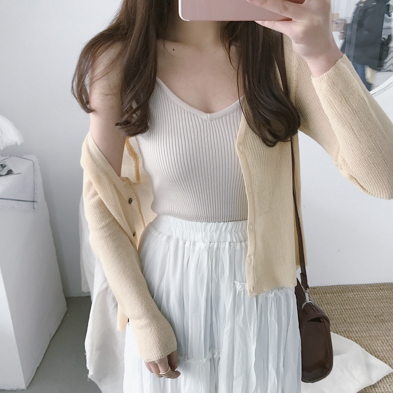 / 復古風修身顯瘦夏季空調衫開衫防曬冰絲針織外搭薄外套短款披肩女