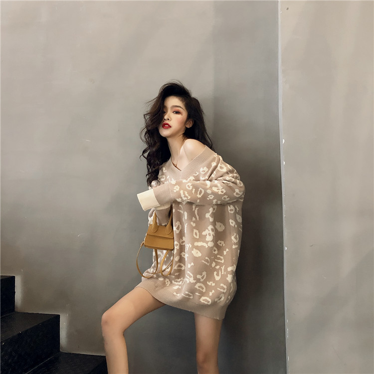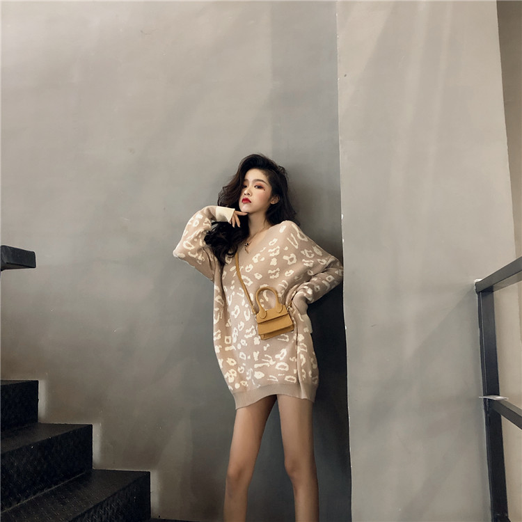 港風新品復古針織衫慵懶風V領寬松顯瘦oversize中長款毛衣上衣女