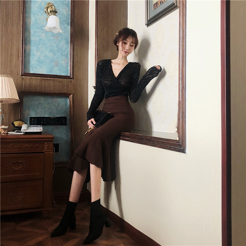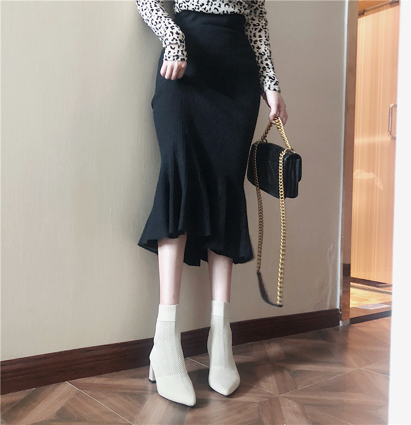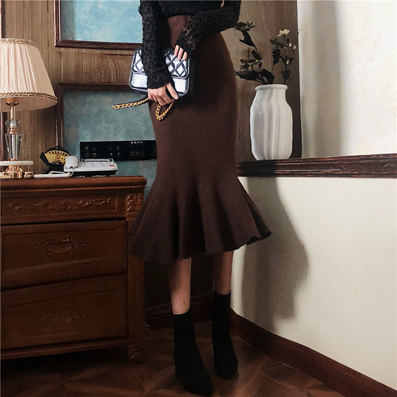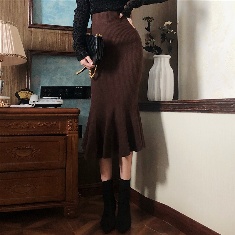 / 2018秋裝新款韓版針織魚尾裙高腰中長款包臀裙百搭chic毛線半身裙