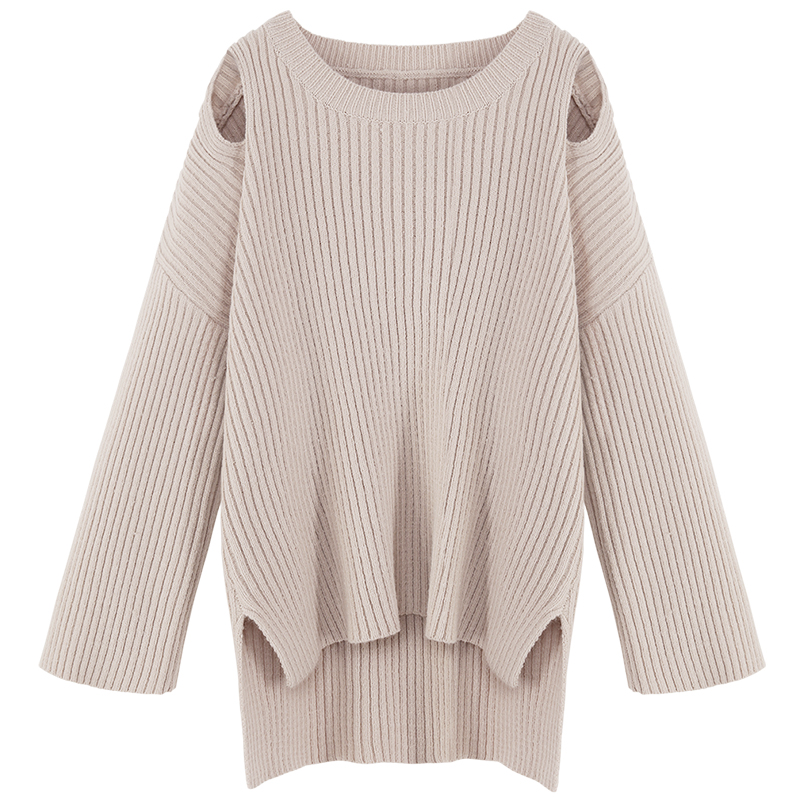 MG小象慵懶風套頭毛衣女寬松圓領露肩毛線衫2018新款冬季心機上衣