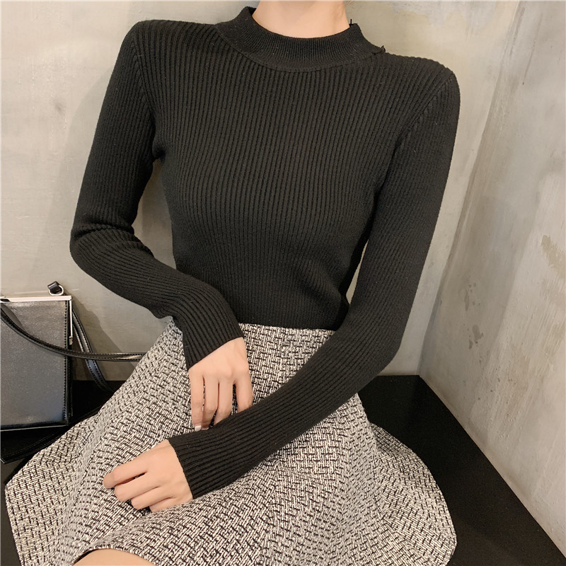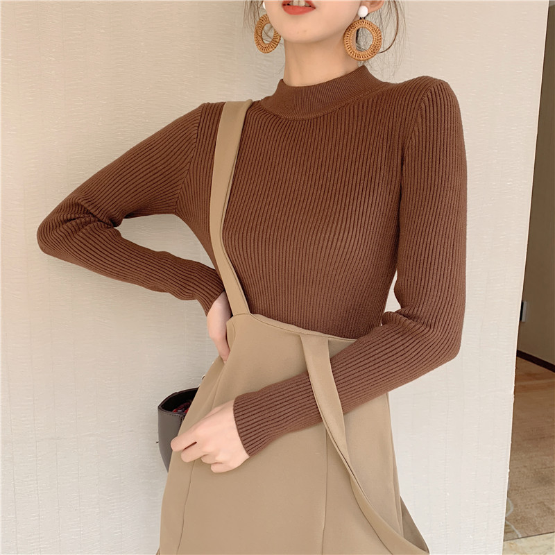 / 冬季新款韓版chic半高領T恤百搭純色針織衫修身顯瘦長袖打底衫女