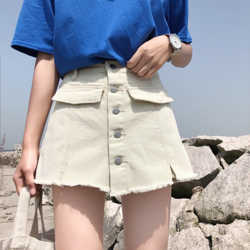 / 2018新款韓版假兩件寬松高腰顯瘦A字裙褲裙闊腿百搭牛仔短褲女夏