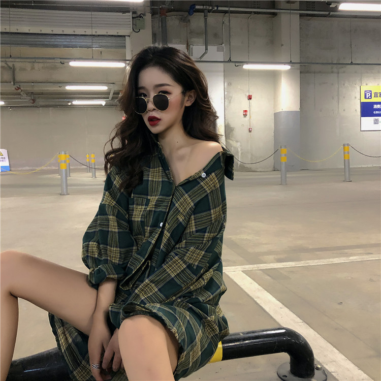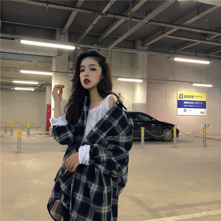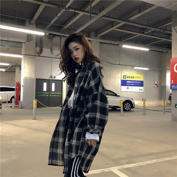 / 中長款格子防曬薄寬松港風長袖襯衣2018新款時尚秋季韓版chic開衫