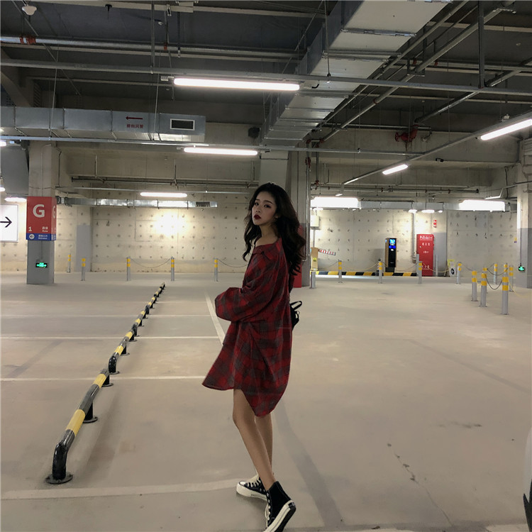 中長款格子防曬薄寬松港風長袖襯衣2018新款時尚秋季韓版chic開衫