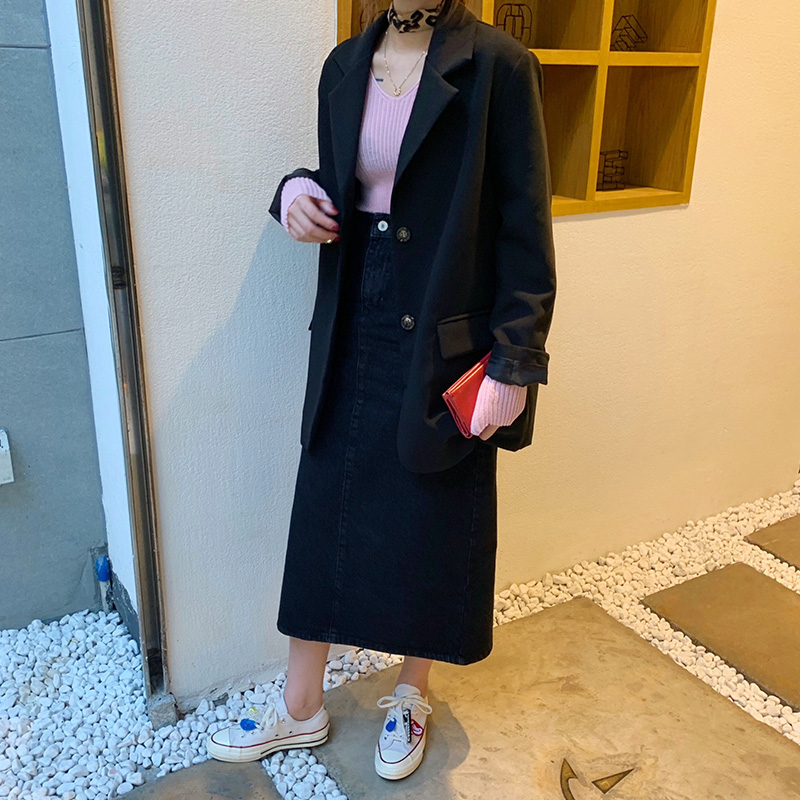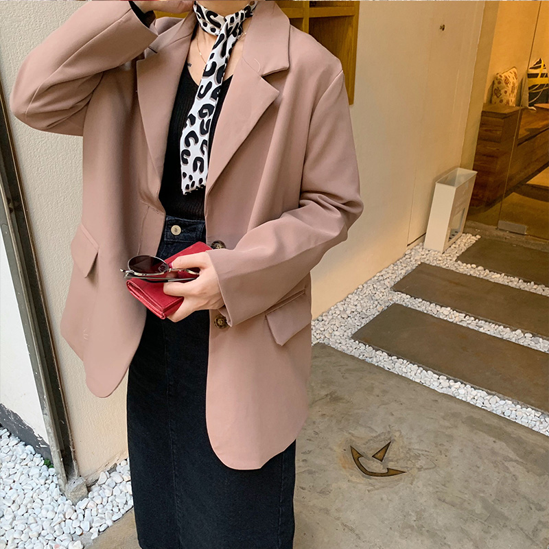 / 雙面豹紋百搭斜腳圍巾飄帶外套寬松港風復古小西服時尚套裝兩件套