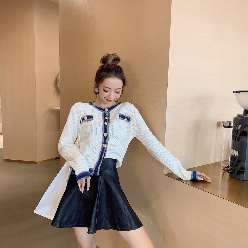 / 韓版復古氣質拼色開衫外套女秋冬季短款單排扣針織衫毛衣外搭上衣