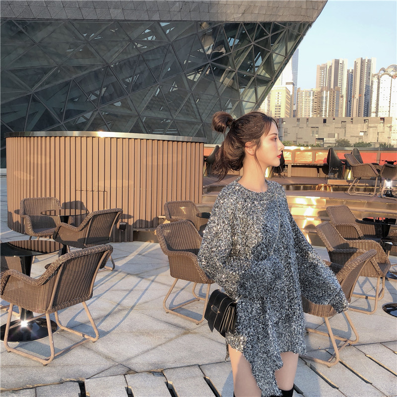 / 復古氣質中長款上衣女慵懶風時尚百搭chic秋季不規則寬松閃閃毛衣