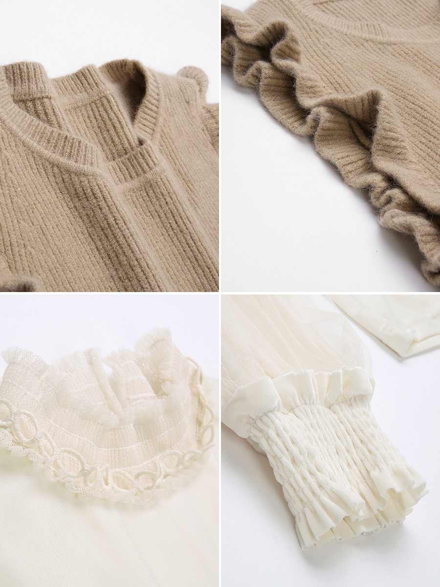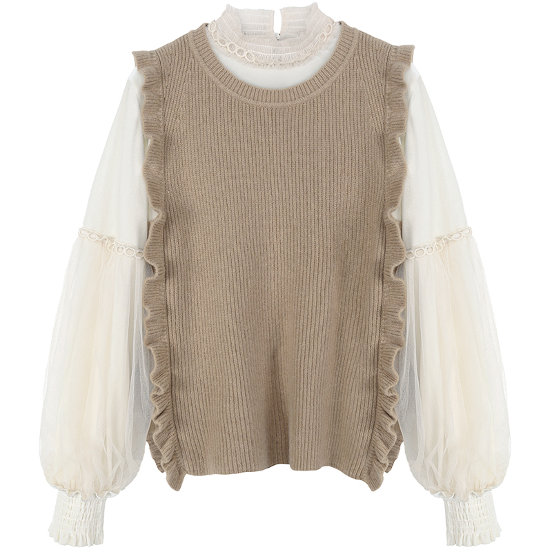 MG小象長袖打底襯衫女冬2018新款寬松針織馬甲燈籠袖學生套頭上衣