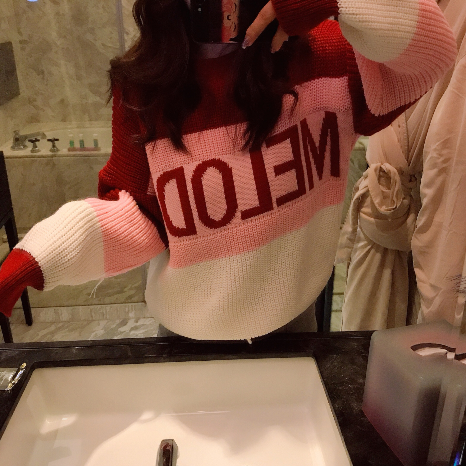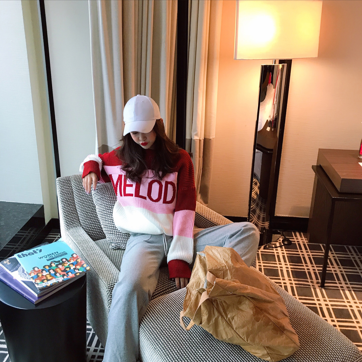 2018韓版時尚新款早秋針織衫女長袖寬松漸變色字母圓領打底毛衣潮