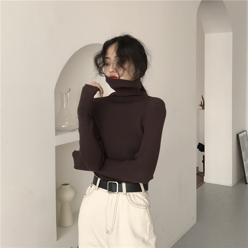 / 慵懶風套頭毛衣女2018新款秋冬純色百搭氣質高領打底厚針織衫上衣