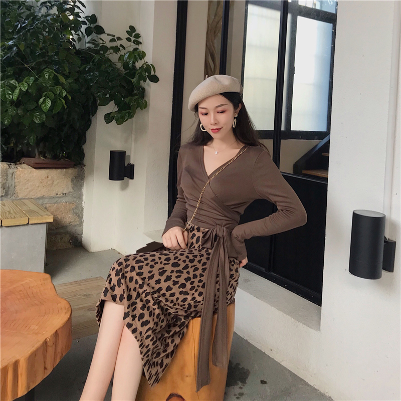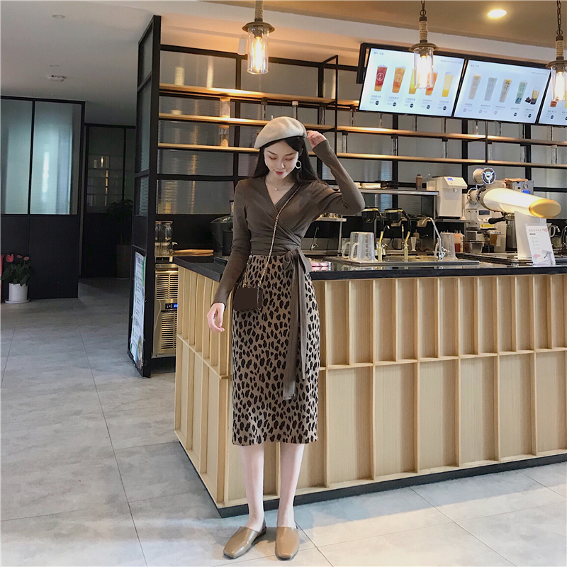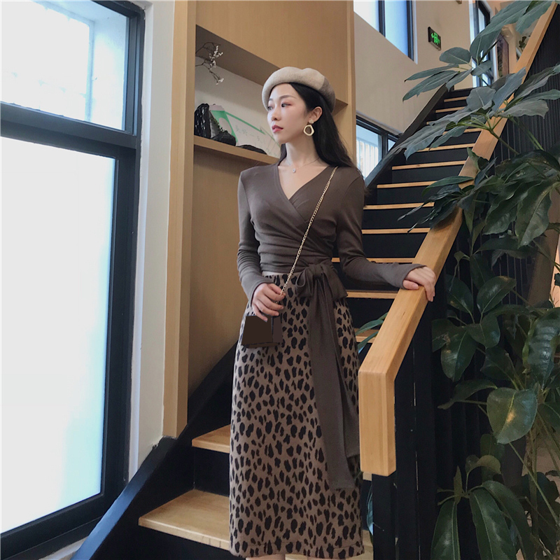 / 港味復古針織套裙女V領上衣高腰半身裙軟妹氣質初秋套裝裙兩件套