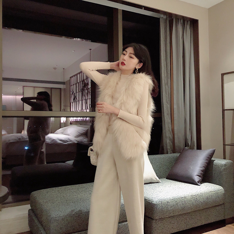 / 新款氣質名媛毛毛馬甲休閑呢子闊腿褲港風氣質時尚套裝chic兩件套