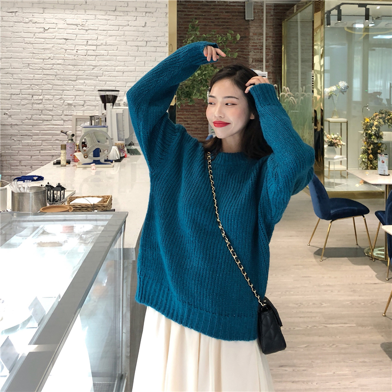 / 新款厚實慵懶蝙蝠袖寬松毛衣少女高腰百搭半身紗裙時尚套裝兩件套