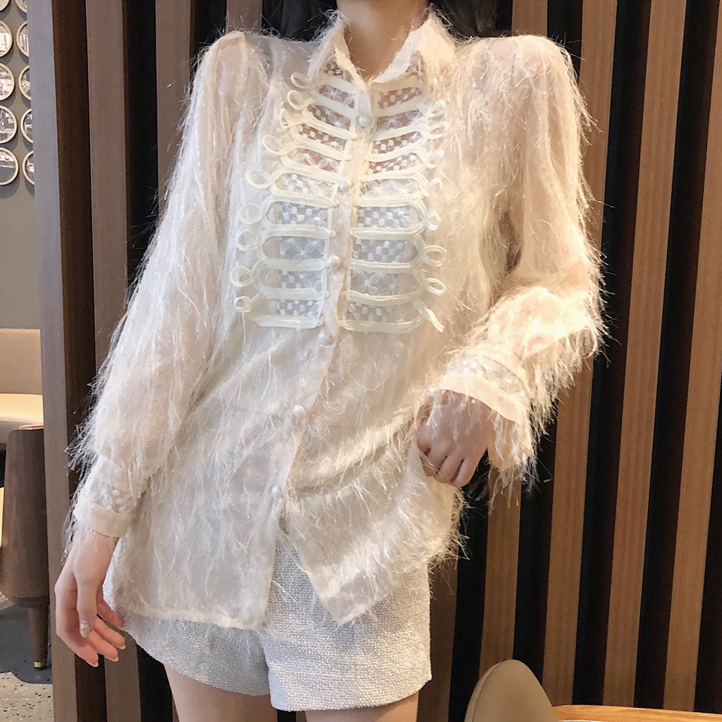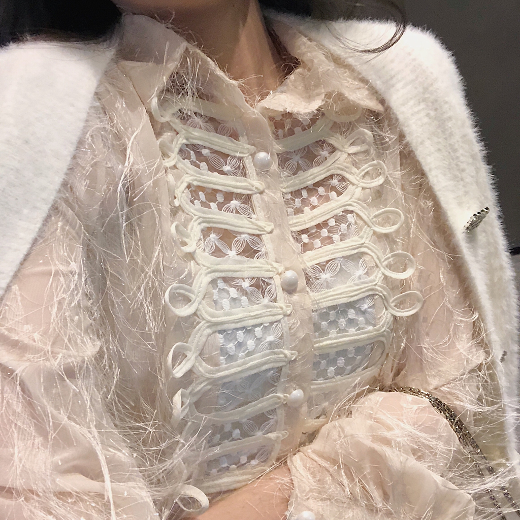 秋冬新款氣質修身襯衫韓版毛毛長袖百搭襯衣網紅毛衣外套開衫套裝