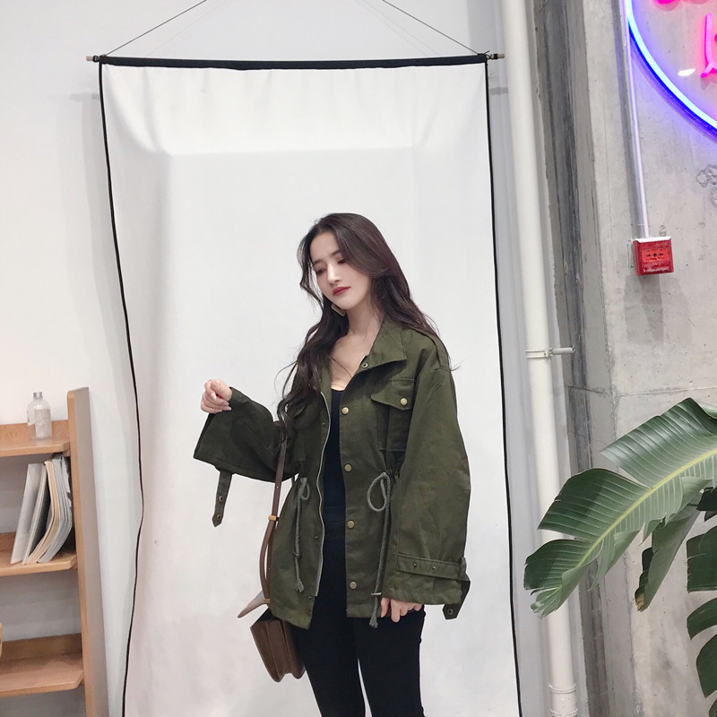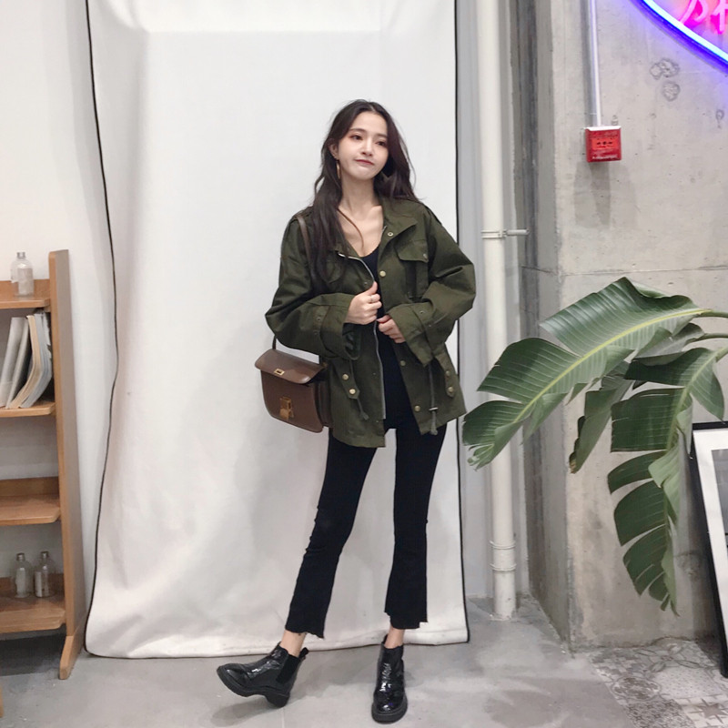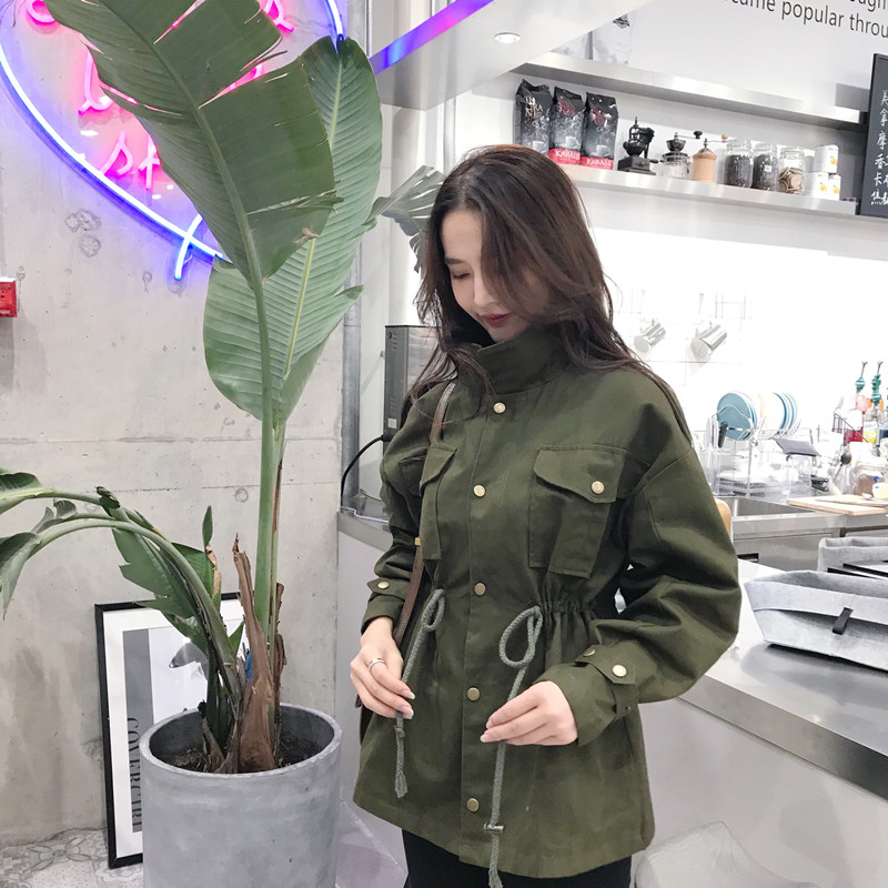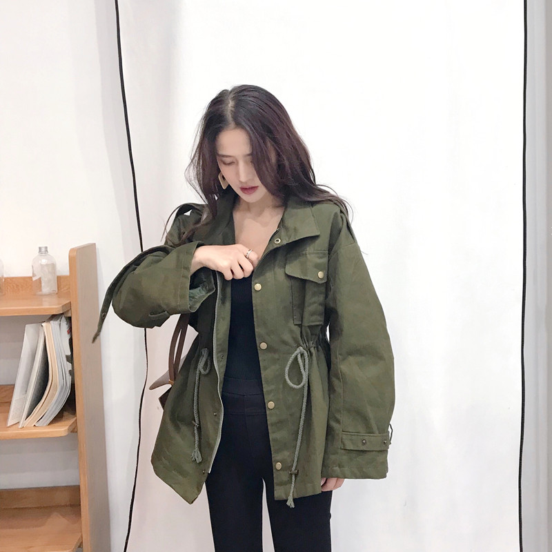 韓國復古港風外套冬季女2018新款百搭工裝寬松休閑口袋收腰風衣女