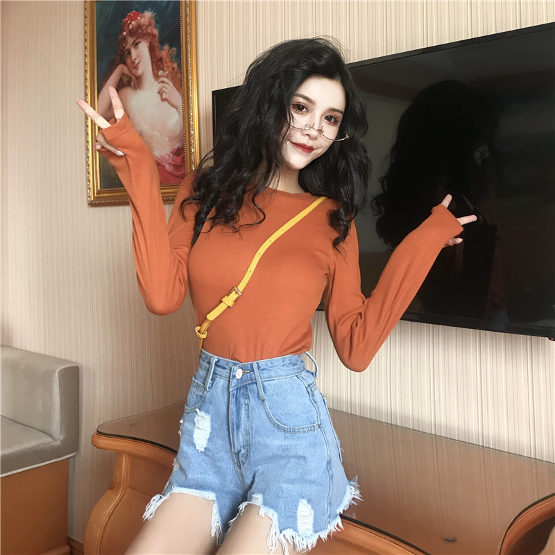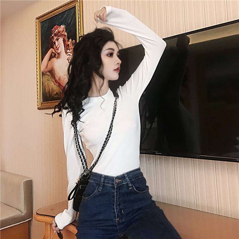 2018新款港風chic復古初秋打底長袖T恤韓版修身顯瘦百搭上衣女潮
