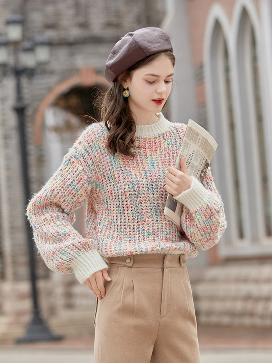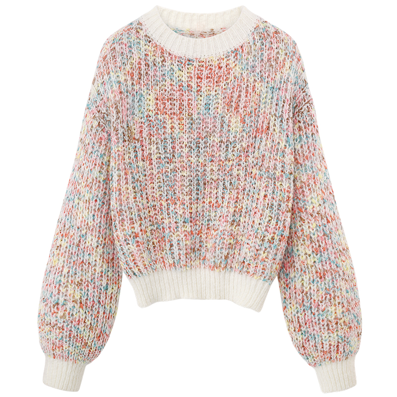MG小象庸懶風套頭毛衣女冬2018新款小清新圓領針織衫寬松長袖上衣