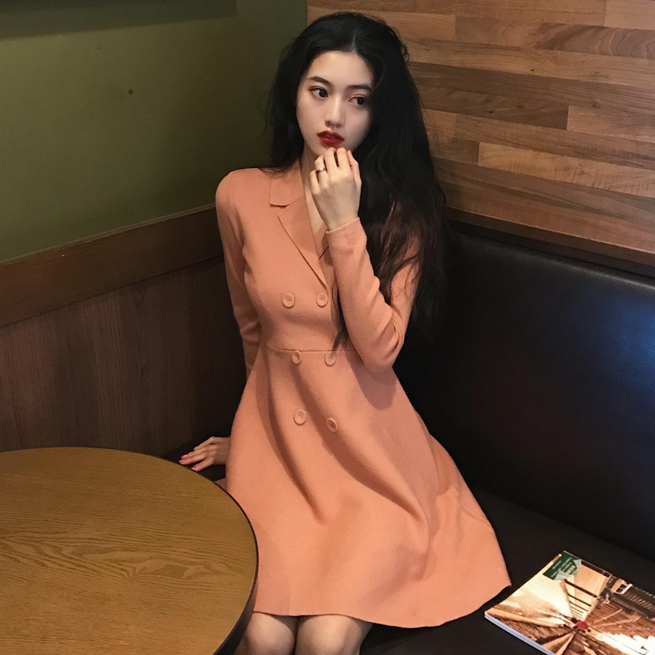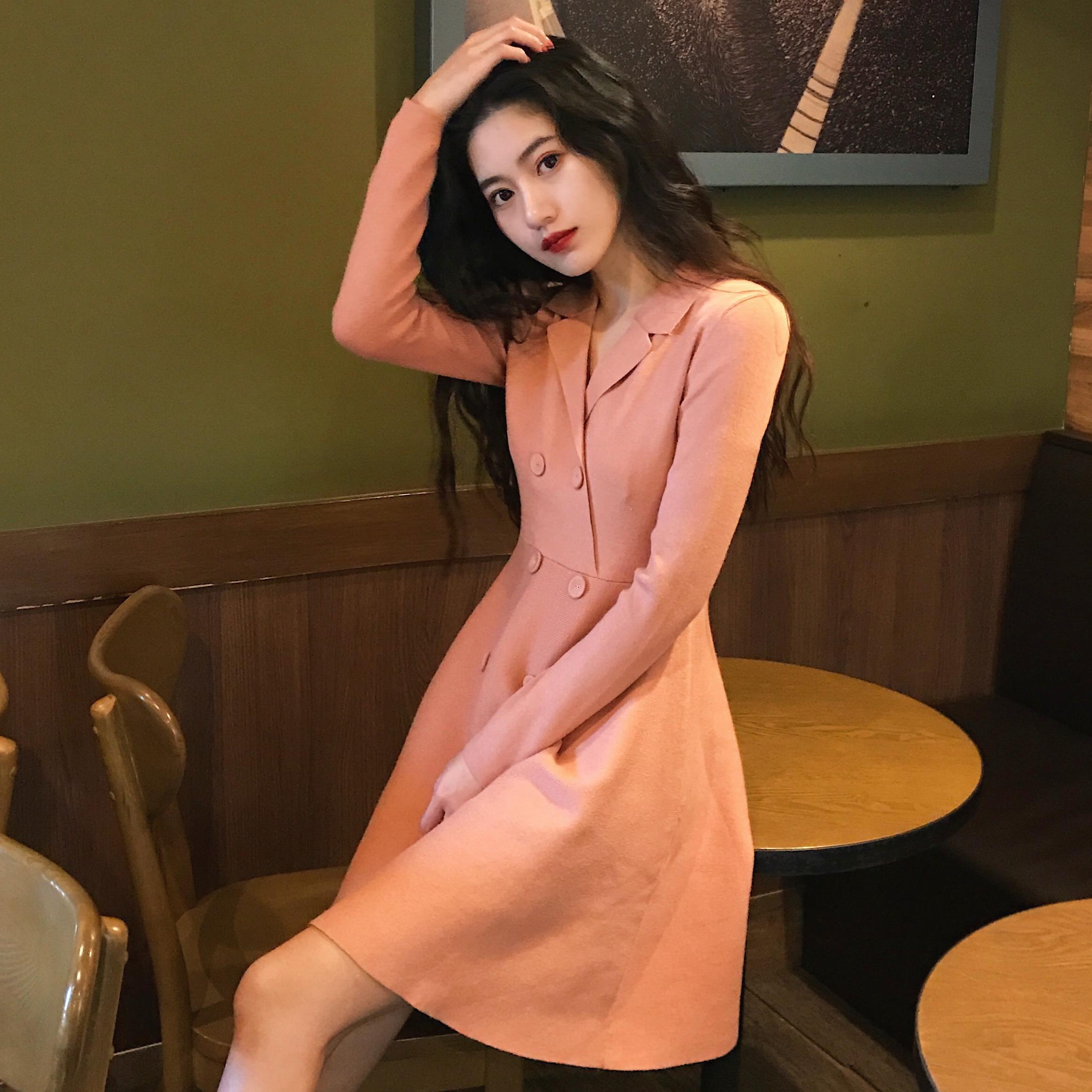 韓版初冬氣質溫柔風毛衣裙女冬裝2018新款女百搭顯腿長針織連衣裙
