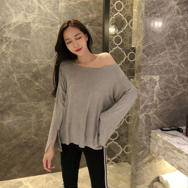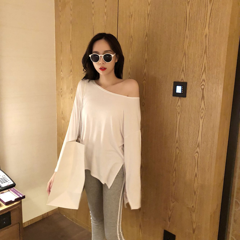 2018秋裝新款女韓版時尚套裝寬松長袖T恤上衣修身打底褲兩件套潮