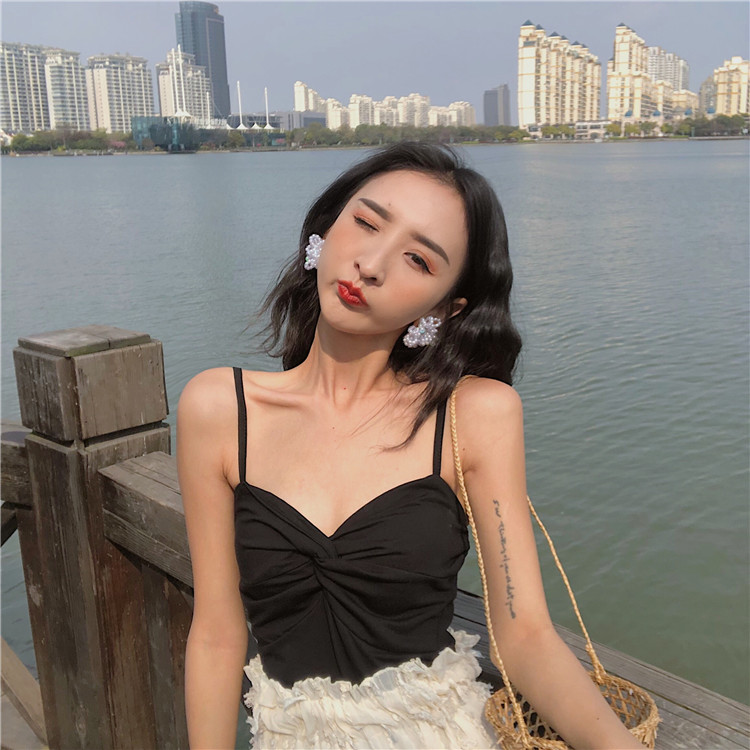 韓版復古新款百搭交叉設計棉質透氣純色時尚小清新內搭吊帶背心女