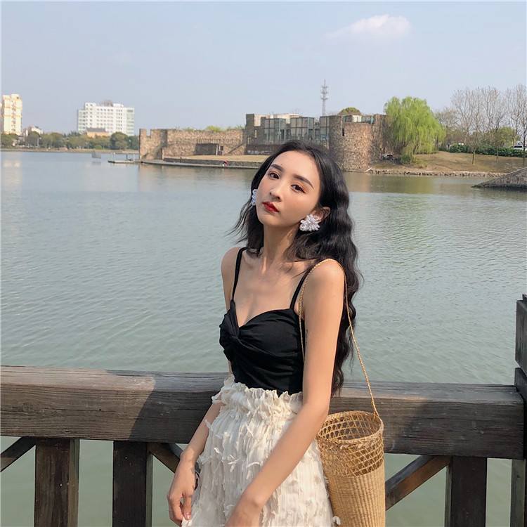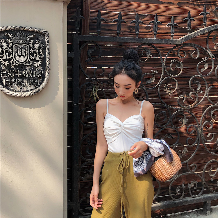 / 韓版復古新款百搭交叉設計棉質透氣純色時尚小清新內搭吊帶背心女