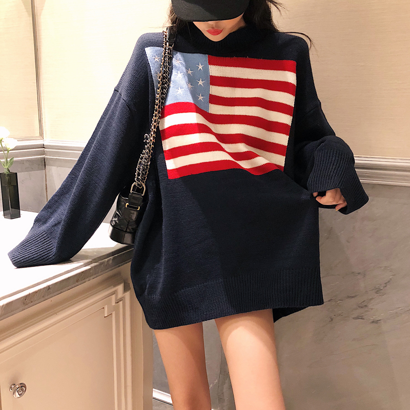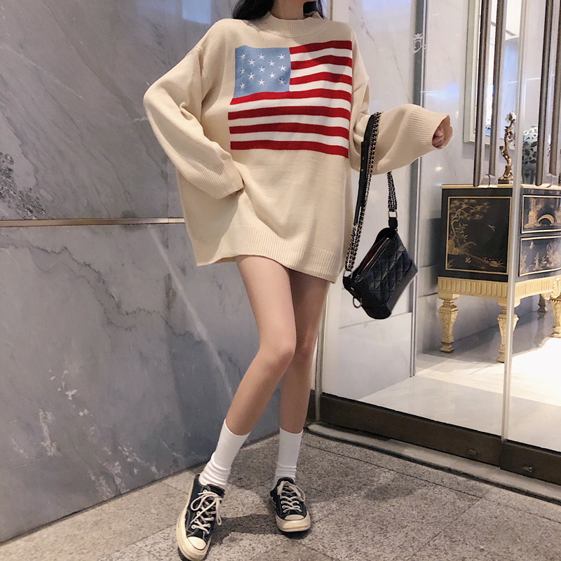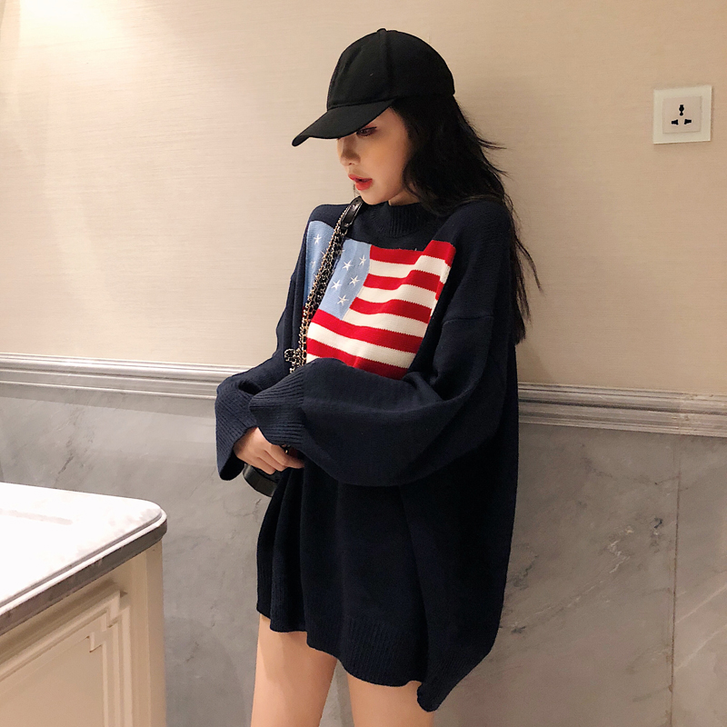慵懶風中長款毛衣女韓版2018新款秋裝套頭長袖上衣寬松針織衫學生