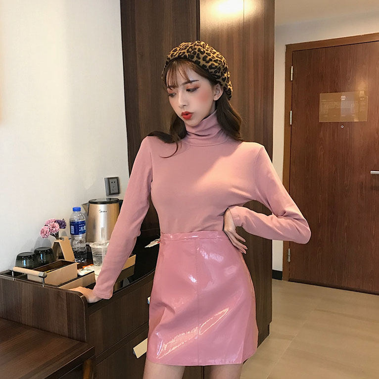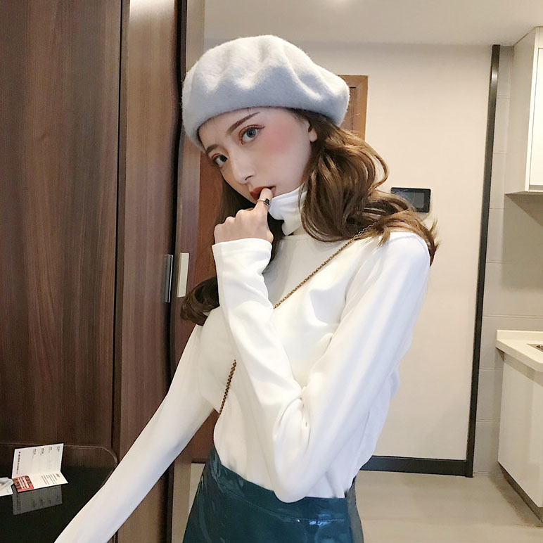 早秋上衣女慵懶長袖t袖女百搭韓版糖果色氣質高領加絨加厚打底衫